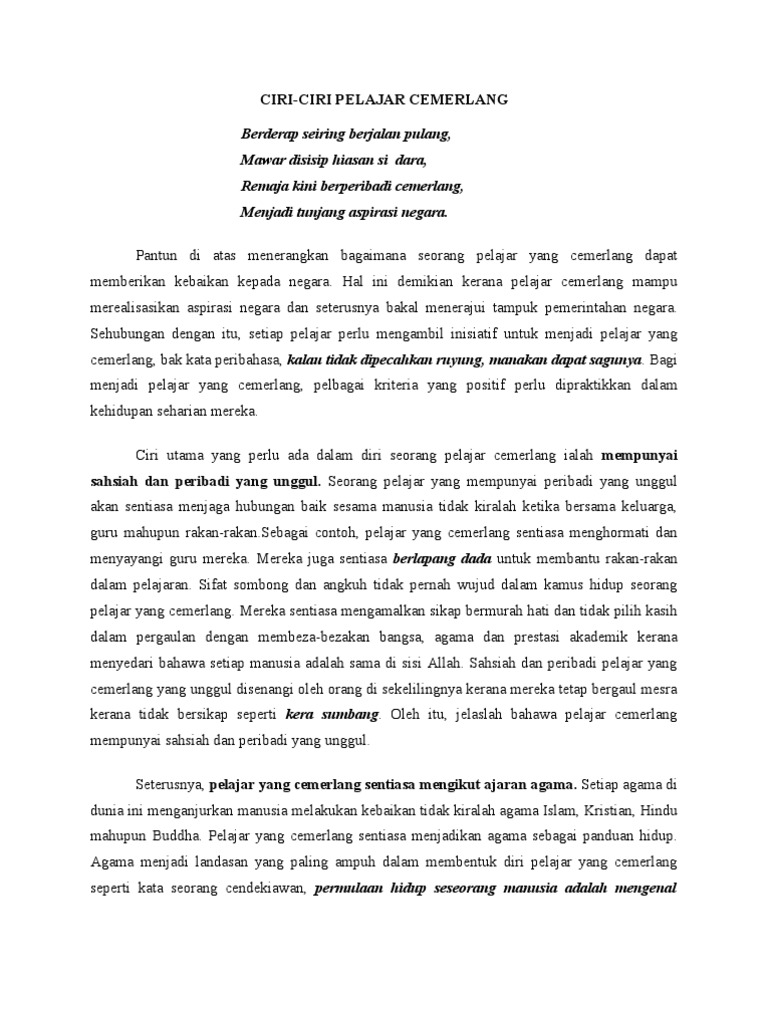 Ciri Ciri Pelajar Cemerlang Sahsiah Dan Peribadi Unggul